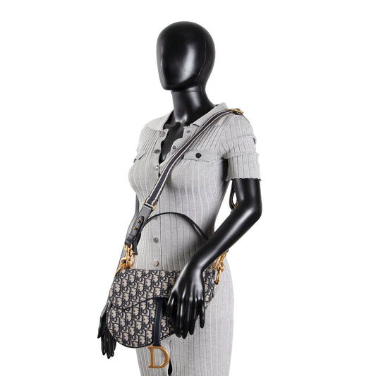 CHRISTIAN DIOR Oblique Saddle Bag w/ Strap - Navy Blue