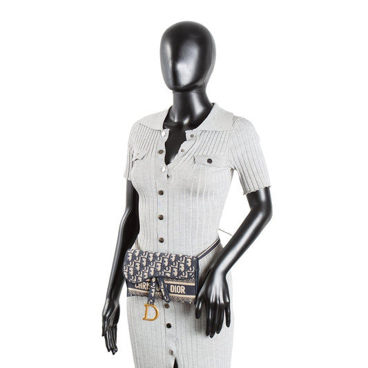 CHRISTIAN DIOR Oblique Slim Saddle Belt Bag - Navy